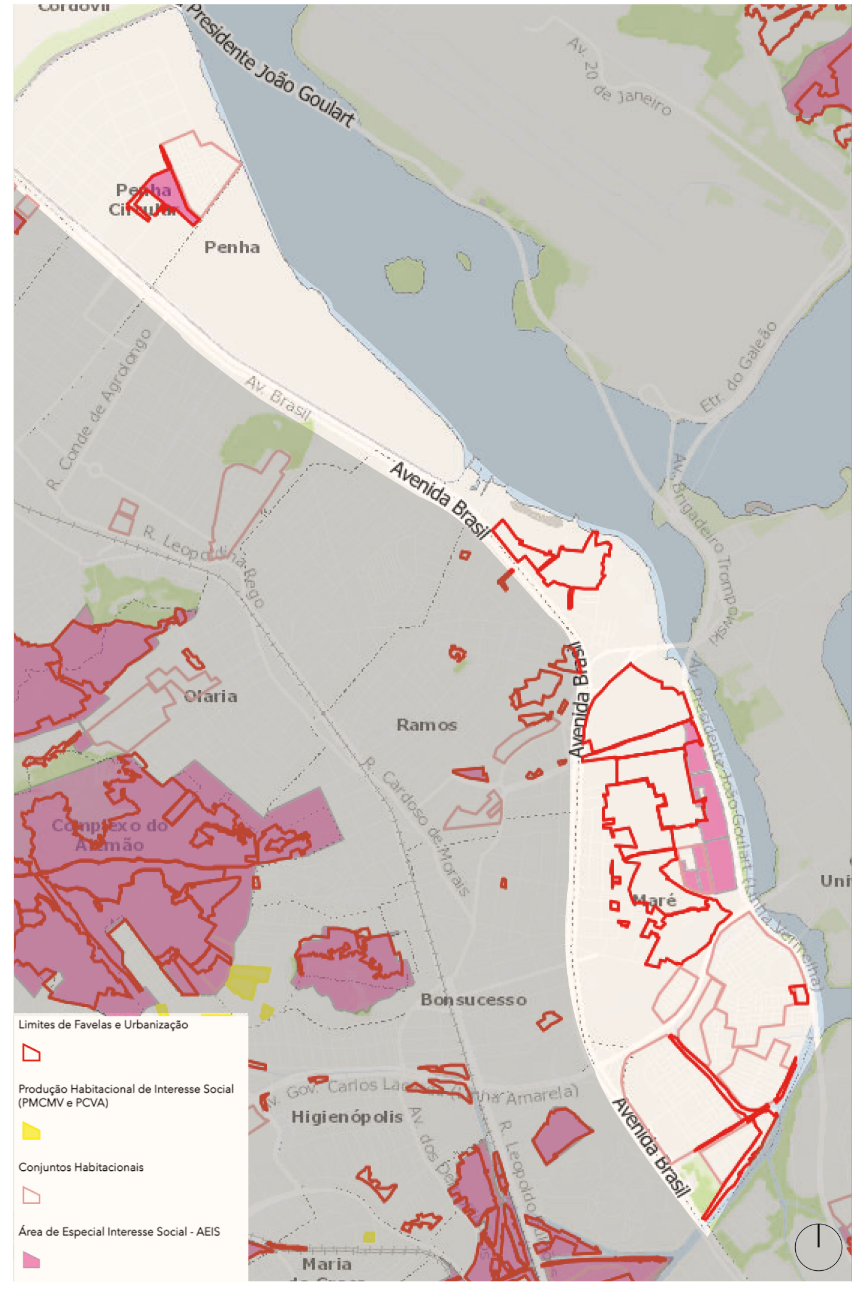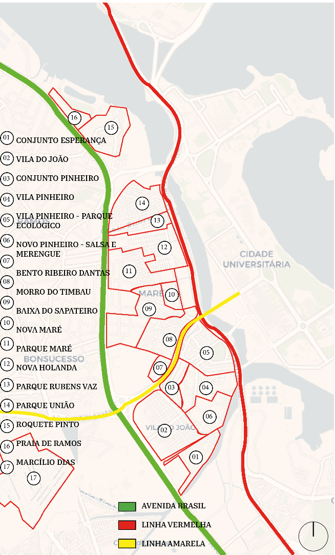 Figura 1: Limite das favelas no bairro da Maré – Sem escala.