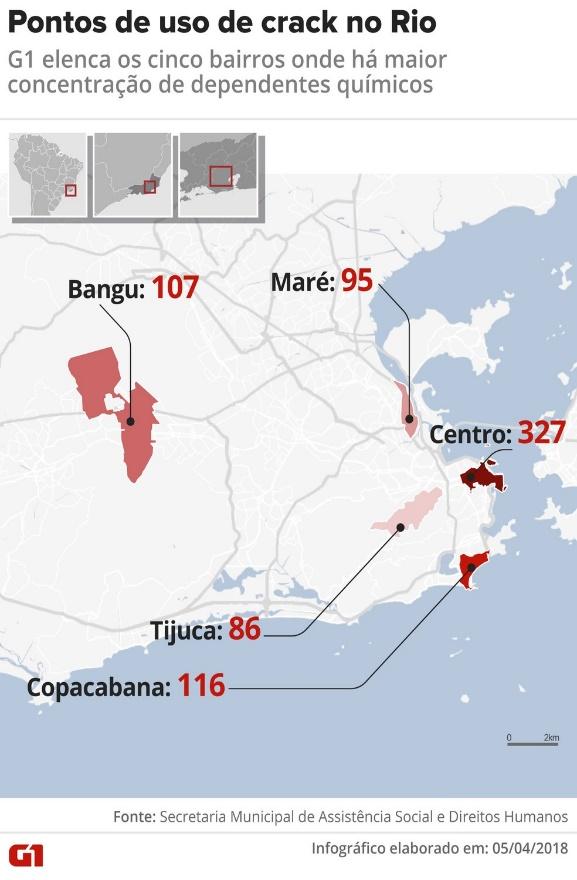 G1. Rio tem 150 pontos de uso de crack que reúnem 2 mil dependentes da droga; veja mapa. G1. 10 abr. 2018. Disponível em: https://g1.globo.com/rj/rio-de-janeiro/noticia/rio-tem-150-pontos-de-uso-de-crack-que-reunem-2-mil-dependentes-da-droga-veja-mapa.ghtml. Acesso em 27 nov. 2021.