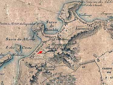 Figure 10: Detail showing the two hills occupied by French invaders after landing at Saco do Alferes.