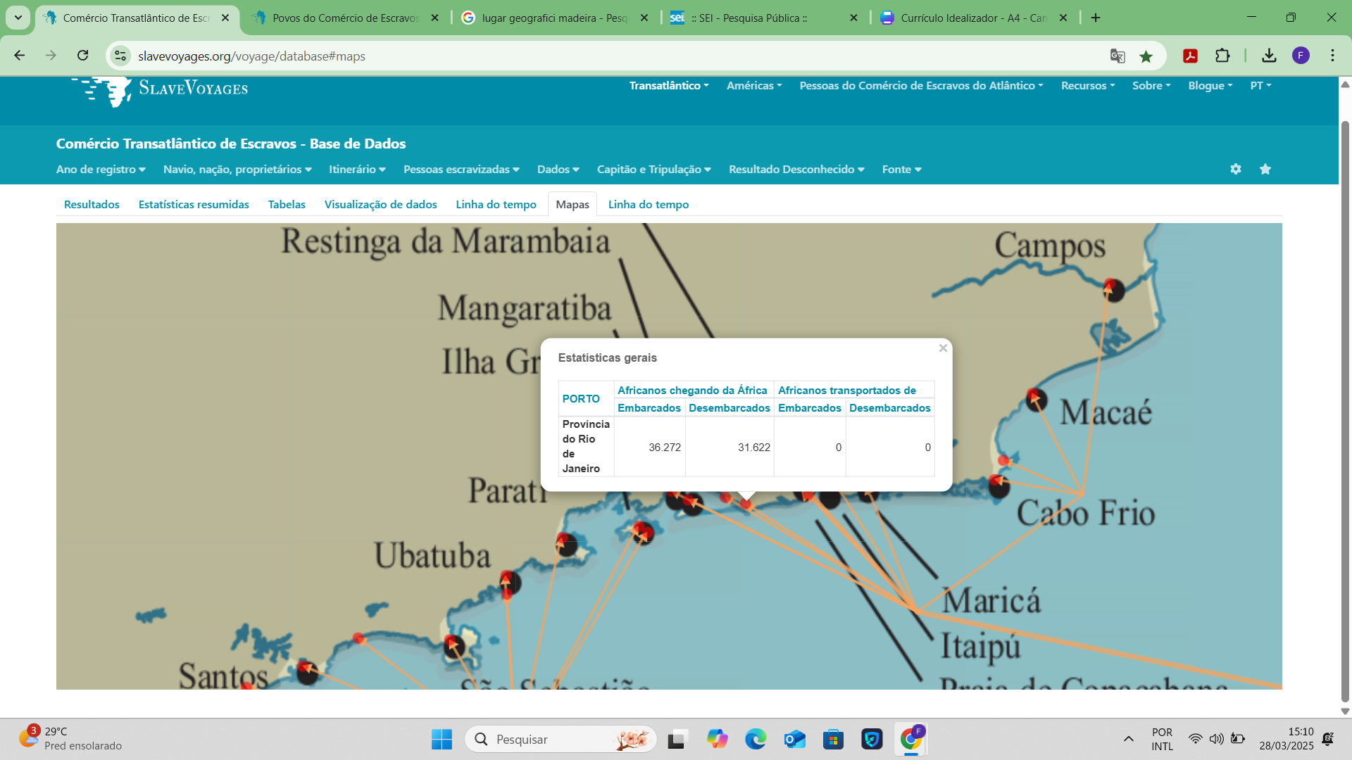 Figure 8: Screenshot of a map showing slave trade along the Brazilian coast.